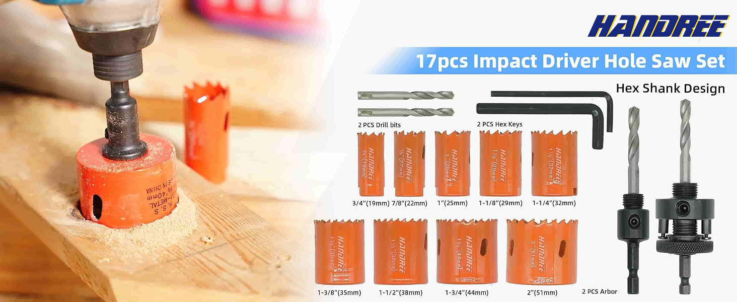 Handree 17 Pcs Hex Shank Bi-Metal Hole Saw Set
