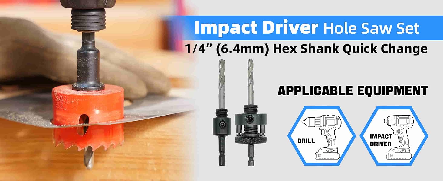 - 【Hole Saw Set for Impact Driver】We provide a professional hole-making solution with impact drivers, featuring a 1/4-inch hex shank design. Improve work efficiency.