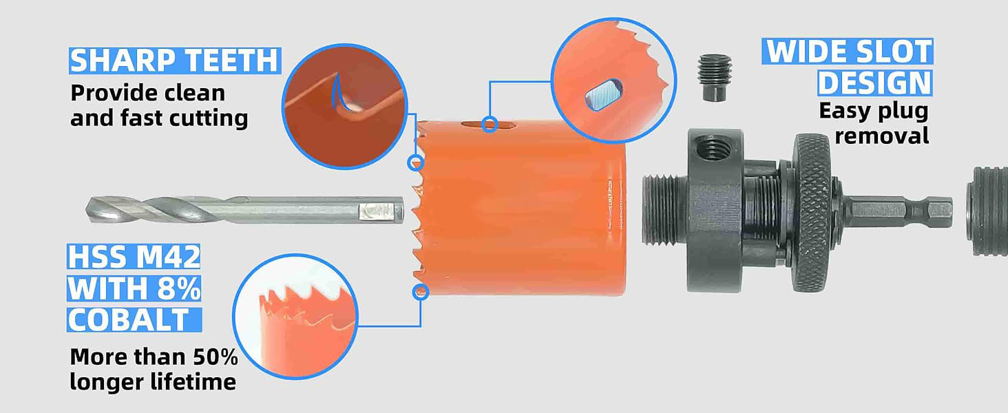 - 【High Quality Material】Premium high speed steel M42 with 8% cobalt tooth configuration to provide clean and fast cutting in various materials. 30/38mm cutting depth. Strong impact wear resistance.