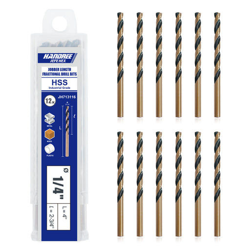 Handree Jobber Length Drill Bits, M35, 135 Degrees Split Point Round Shank, Brozen Finish