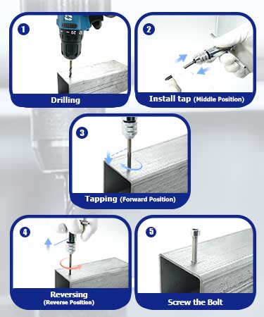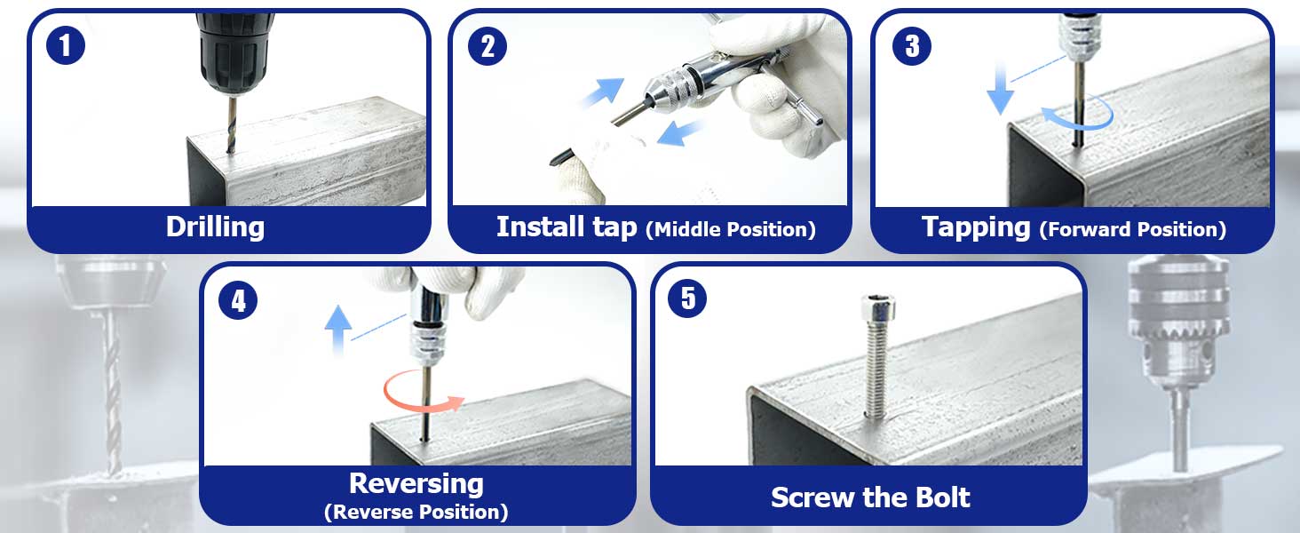 - Drill Bits, SAE Taps and Gear Tap Wrench Cost-Efficient Combination: provides a secure method of drilling the proper hole size before cutting right-hand internal threads. The T-handle silver wrench allows three settings-forward, reverse and lock positions which can be set with your hand efficiently.